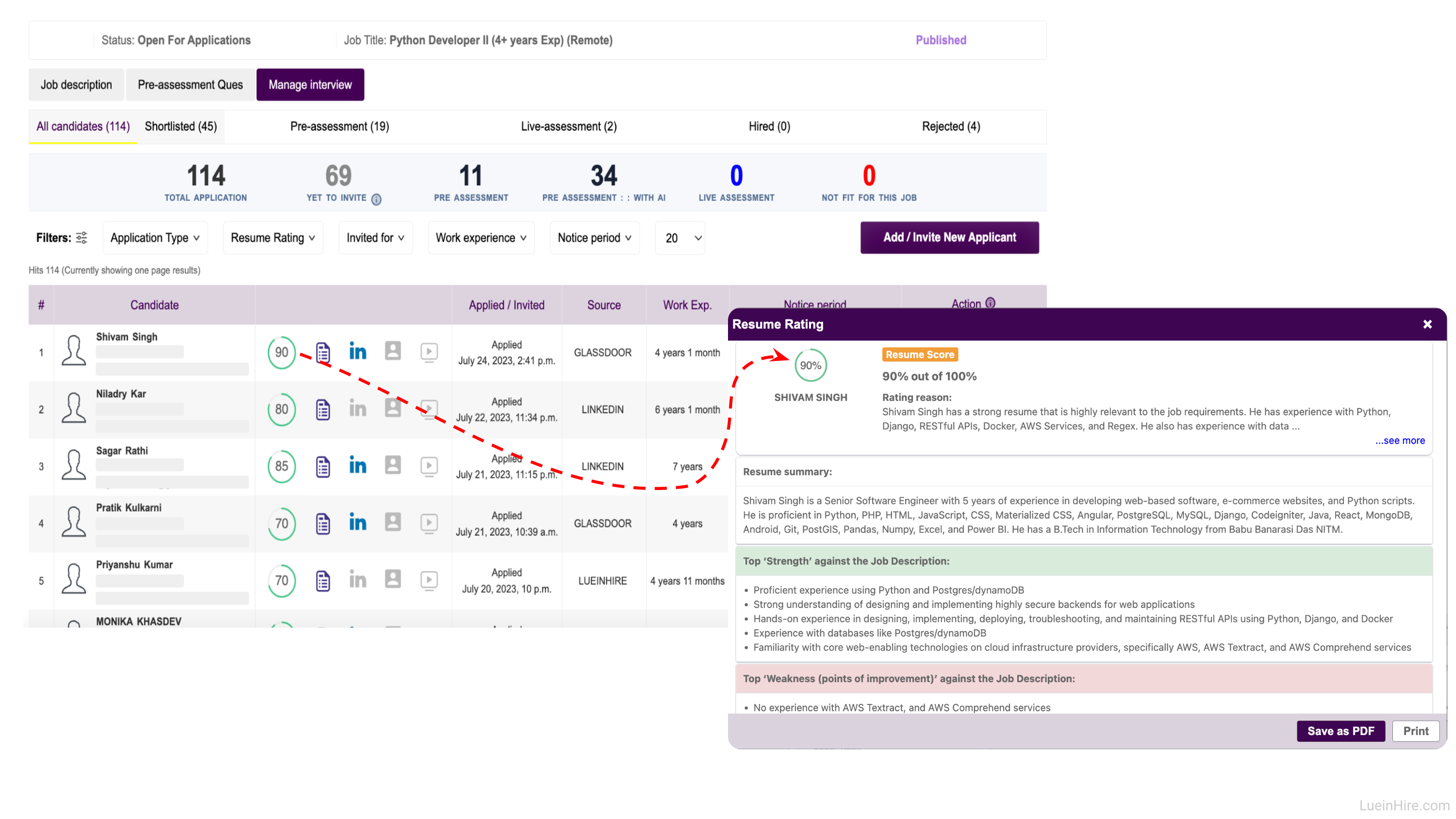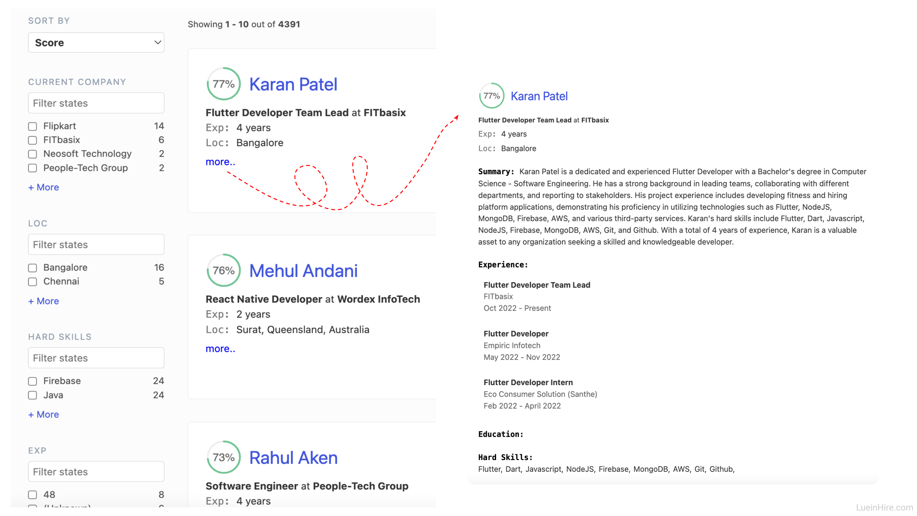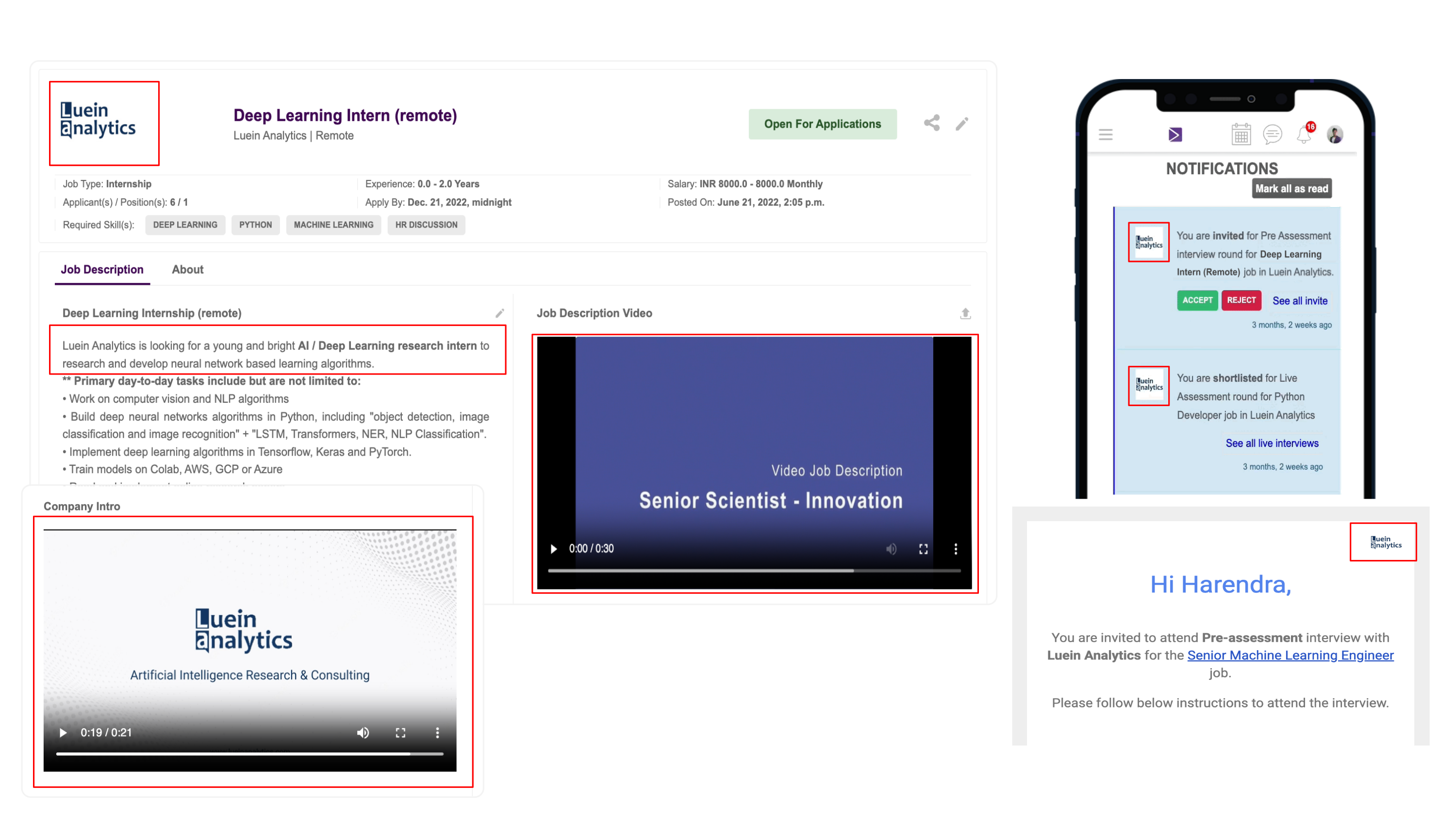 “Luein hire has made our recruitment and selection job easy this year...the analysis of CVs by percentage match is accurate and will quickly identify if any profile is suitable to the job role. From posting on various job sites to evaluation of CVs to summarising candidates helps in quick decision making. Being an AI platform, we can take the first round of interviews to evaluate candidates as per time convenience of us and the candidates. It has saved much time and effort for our teams. Thank you Luein hire!”