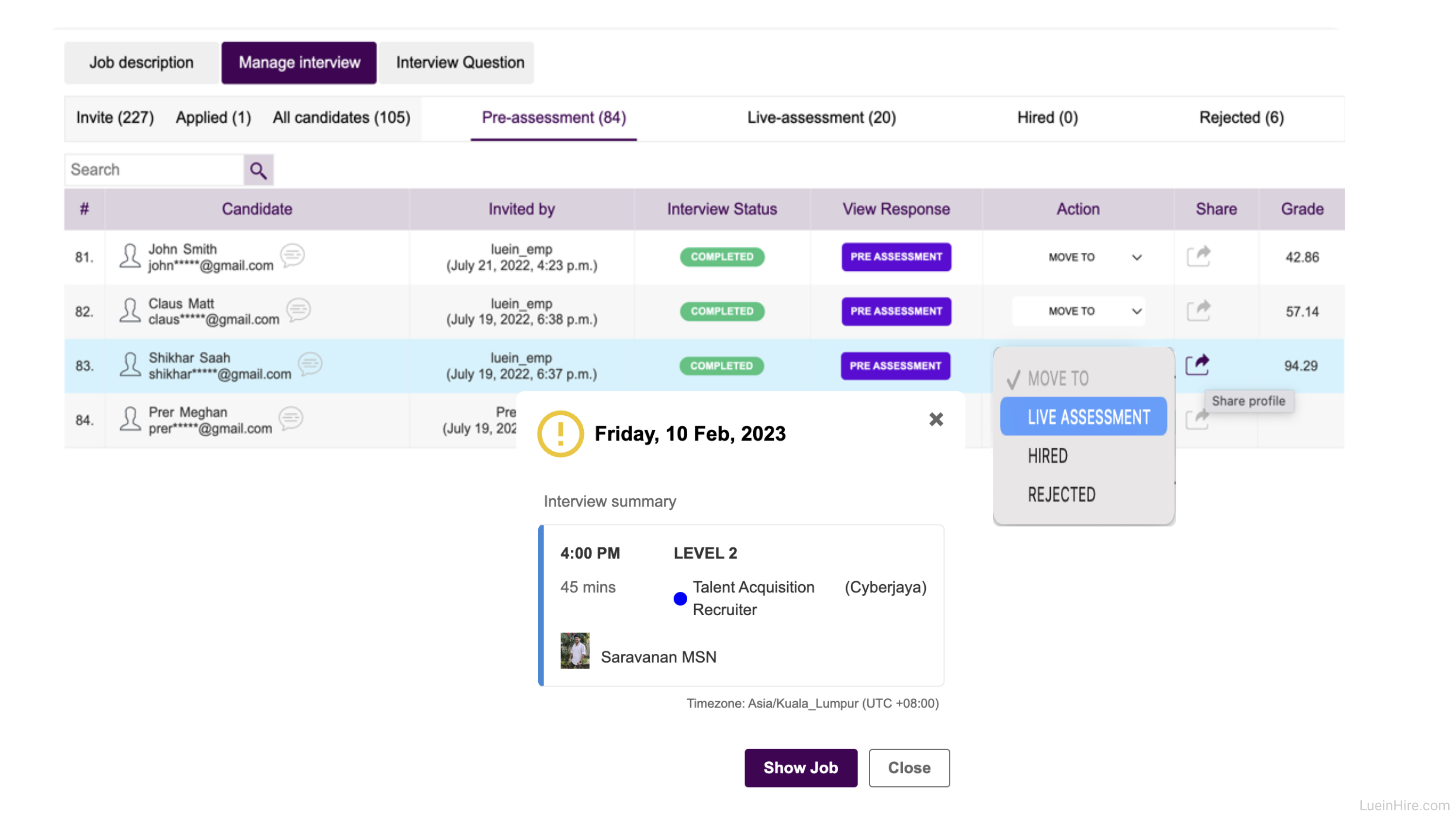 “I am incredibly grateful for LueinHire's support in our recent hiring efforts, particularly for junior & middle level positions. Their AI screening & talent pre-assessment hiring tool has been a game changer, efficiently evaluating candidates and saving us time. The platform's ability to identify top talent based on our criteria is impressive, and its user friendly interface makes candidate management a breeze. LueinHire has enhanced our ability to attract talented individuals who align with our organisation's culture and goals. Thank you to the entire LueinHire team for their dedication to providing innovative hiring solutions.”