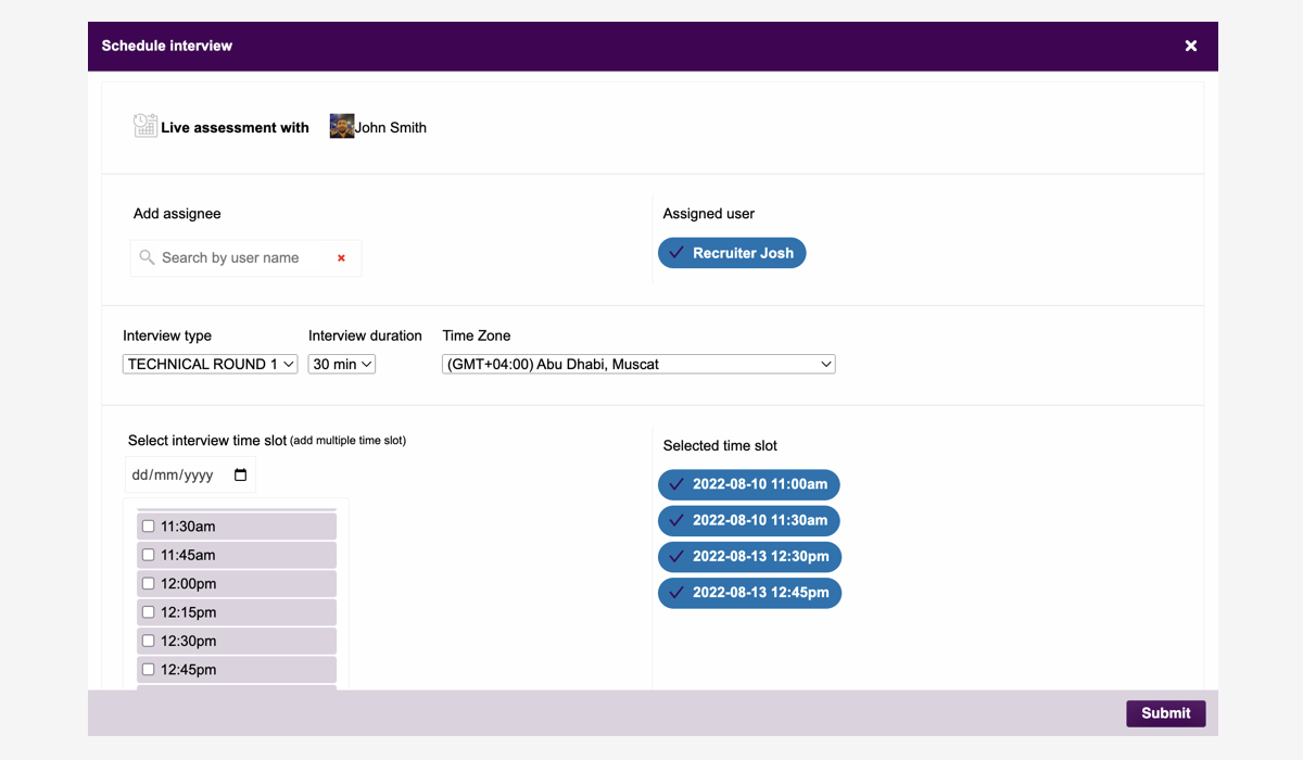 Invite candidate and let AI handle the futher scheduling and communication with candidates.